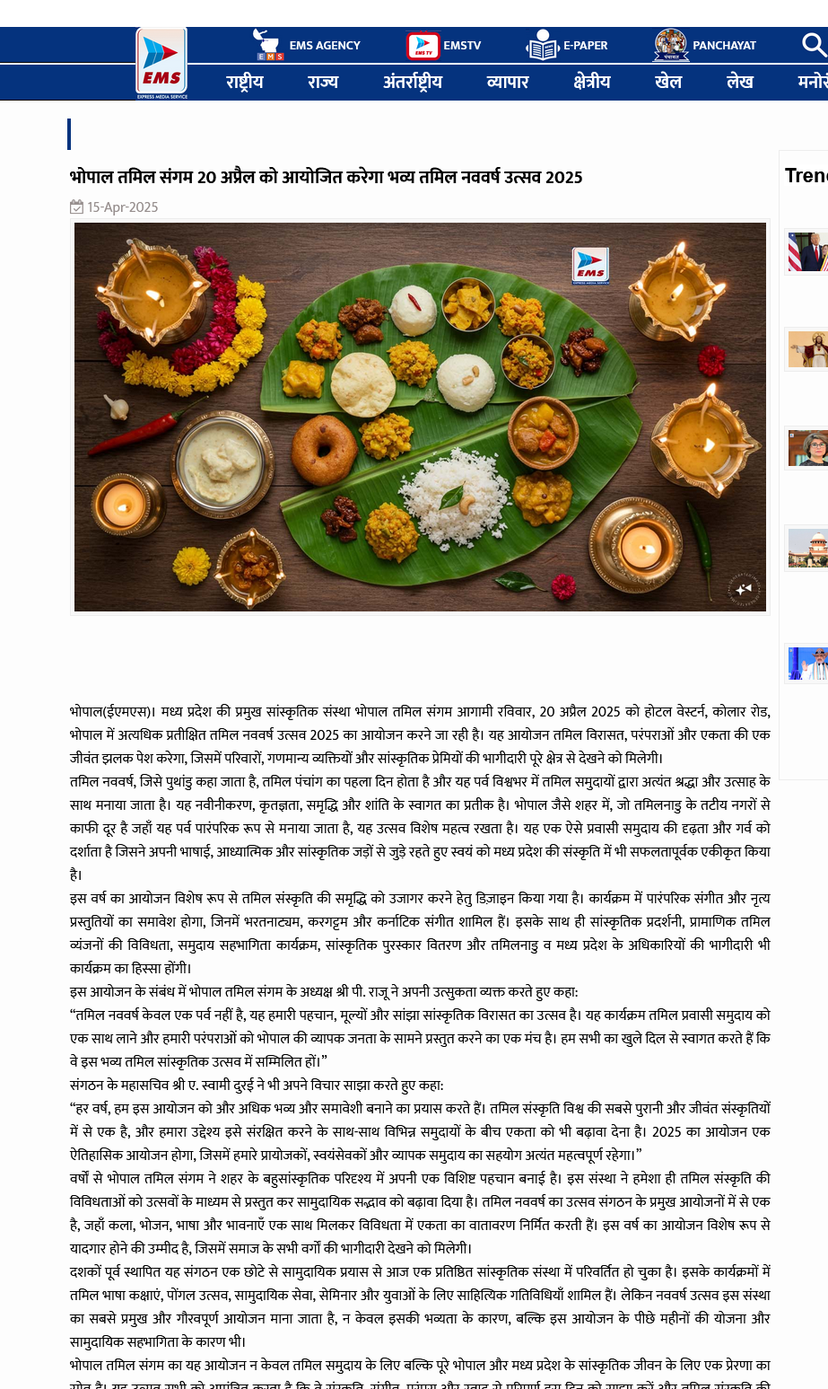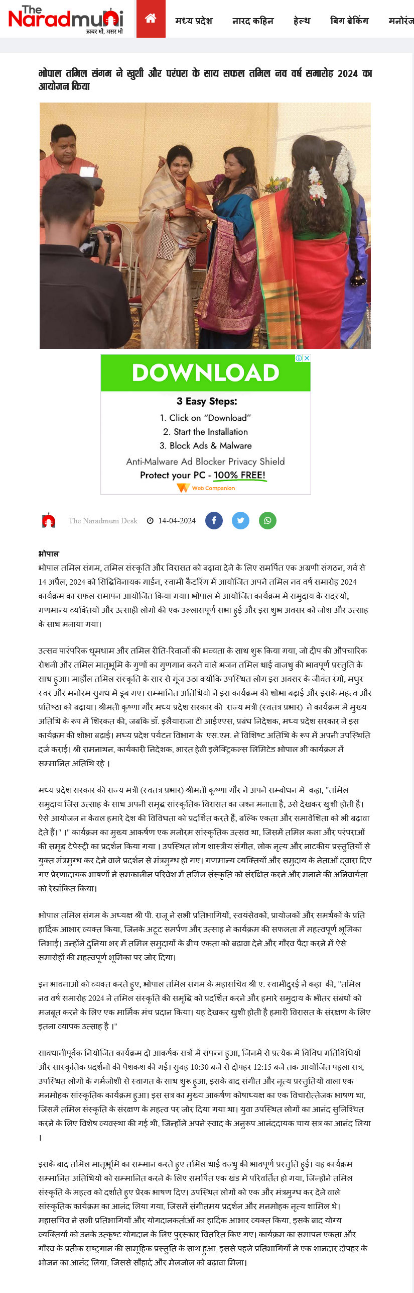 Fostering cultural integration by celebrating Tamil festivals and traditions, ensuring that Tamil families are an integral part of Bhopal’s diverse cultural landscape.