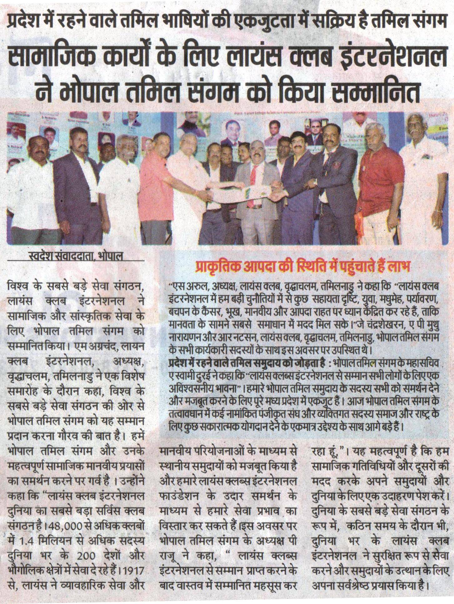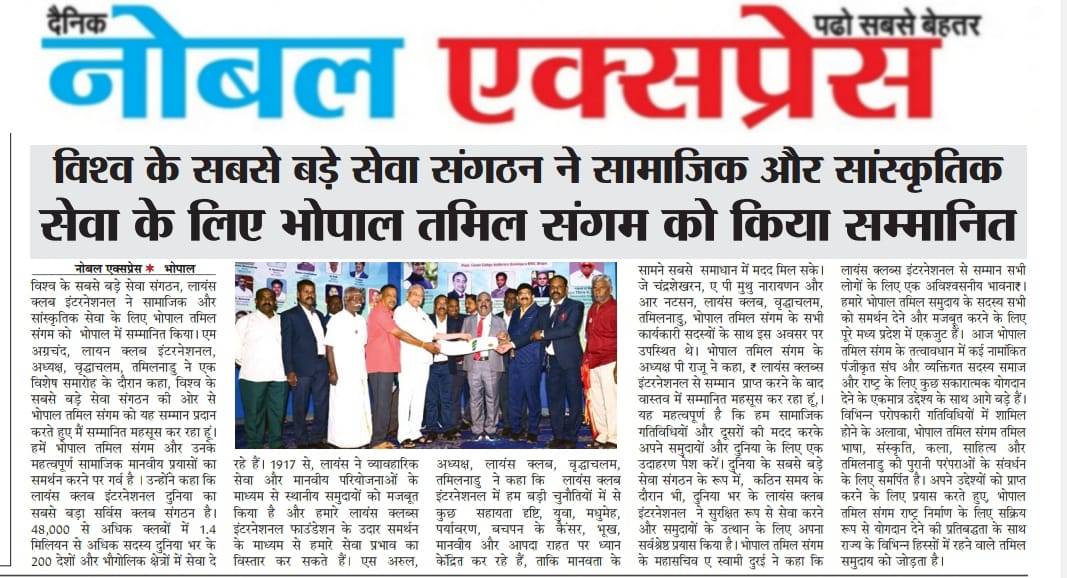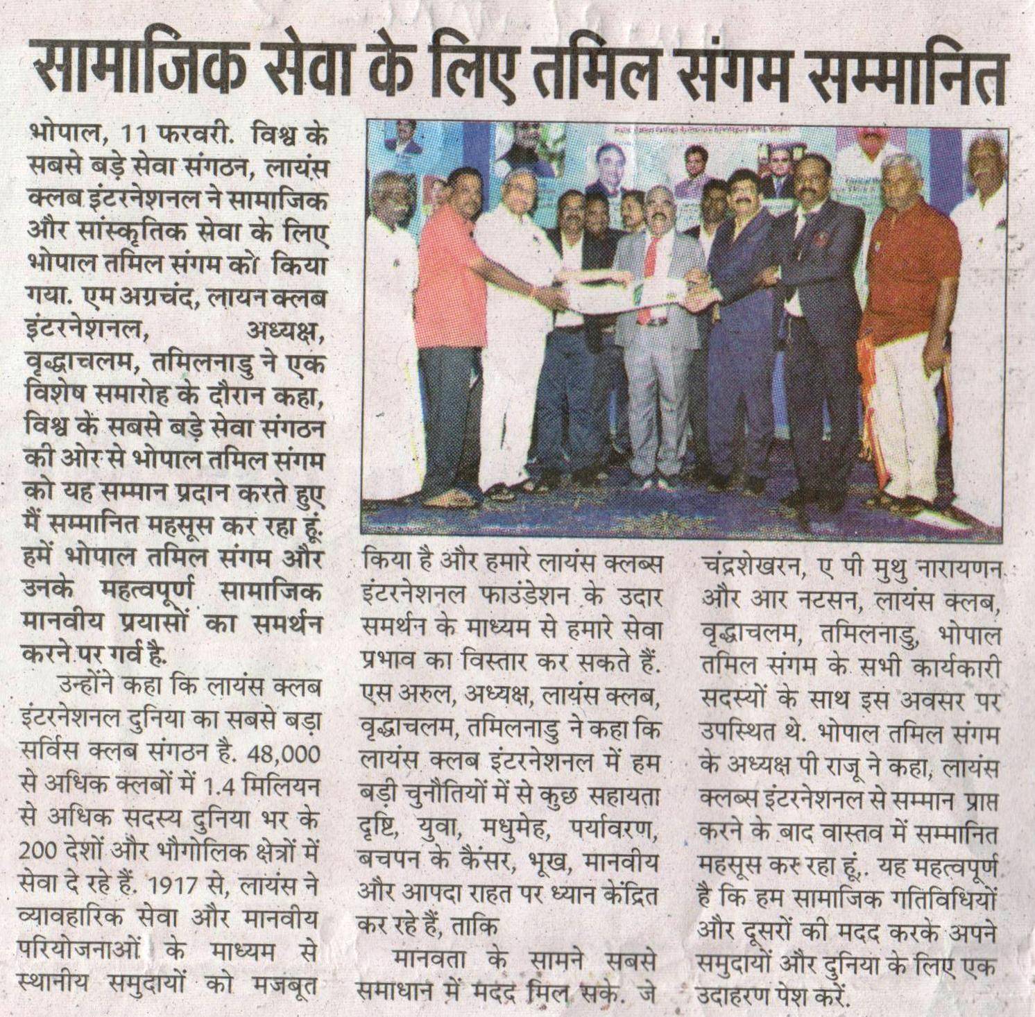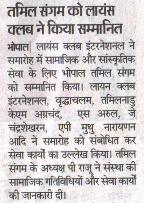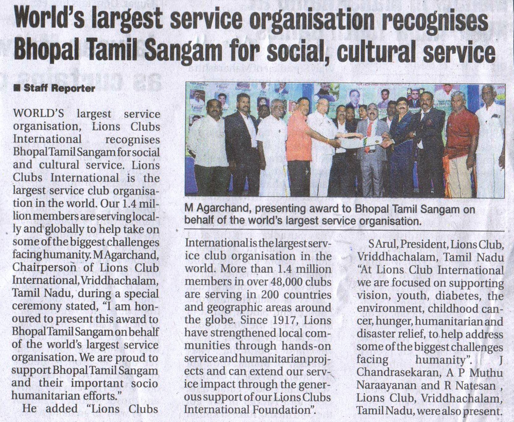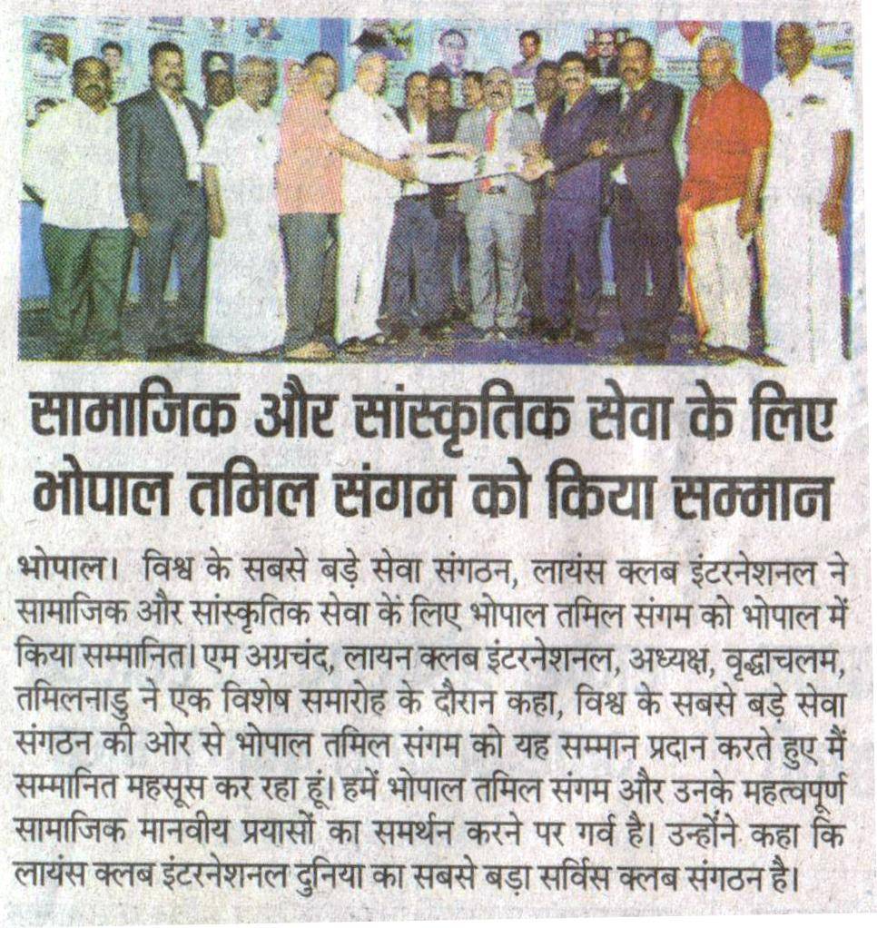 போபால் தமிழ்ச் சங்கம் தொடர்ந்து போபாலில் தமிழரின் அடையாளமாகவும் குரலாகவும் நிலைபெறத் தங்கள் ஆதரவே உயிர்நாடி. தங்கள் கருத்துகளை போபால் தமிழ்ச் சங்கத்தின் மின்னலங்சலுக்கு அனுப்பலாம். போபால் தமிழ்ச் சங்கம் என்றும் என்றும் நெஞ்சார்ந்த நன்றியை வணக்கத்துடன் தெரிவித்துக்கொள்ளும். இந்த அமைப்பின் நலனுக்காக சுயநலம் பாராமல் உழைத்த அனைவரையும் நாங்கள் நெஞ்சாற நினைத்து ஒவ்வொருவருக்கும் நன்றிகள் தெரிவித்துக்கொள்கின்றோம். வாழ்க தமிழ்.