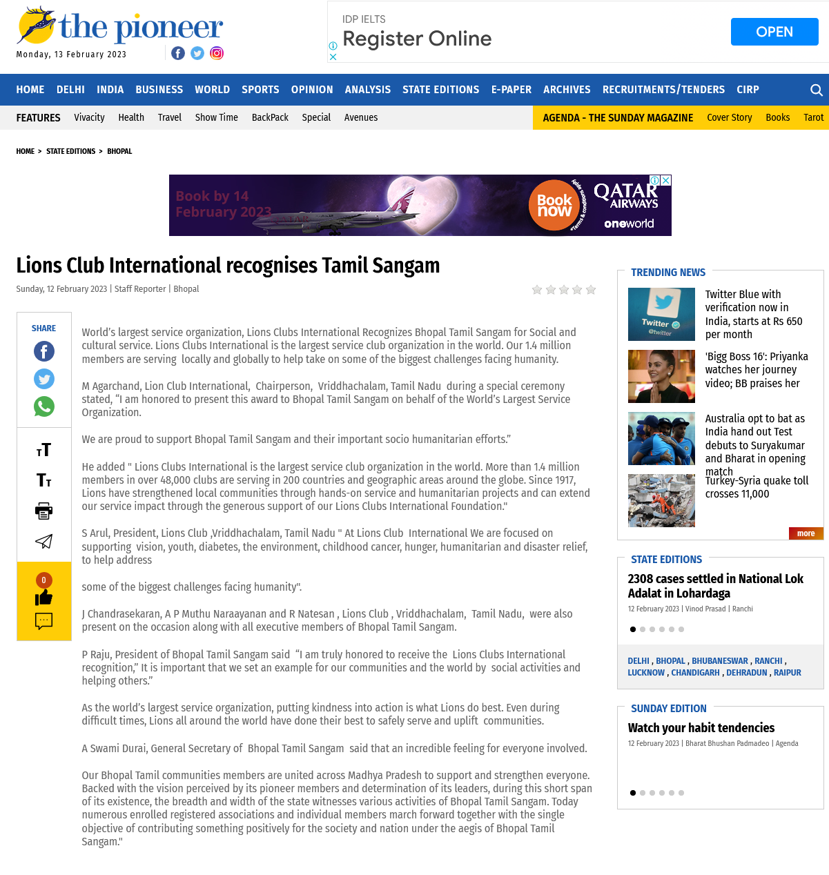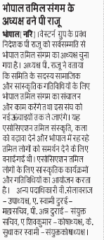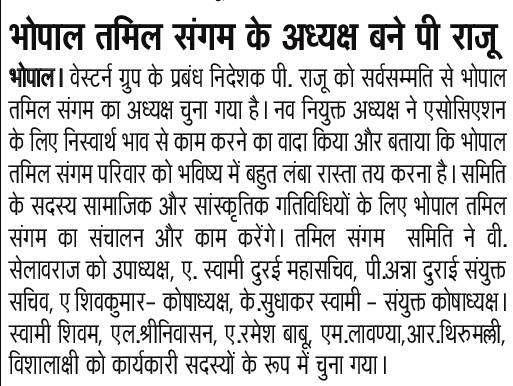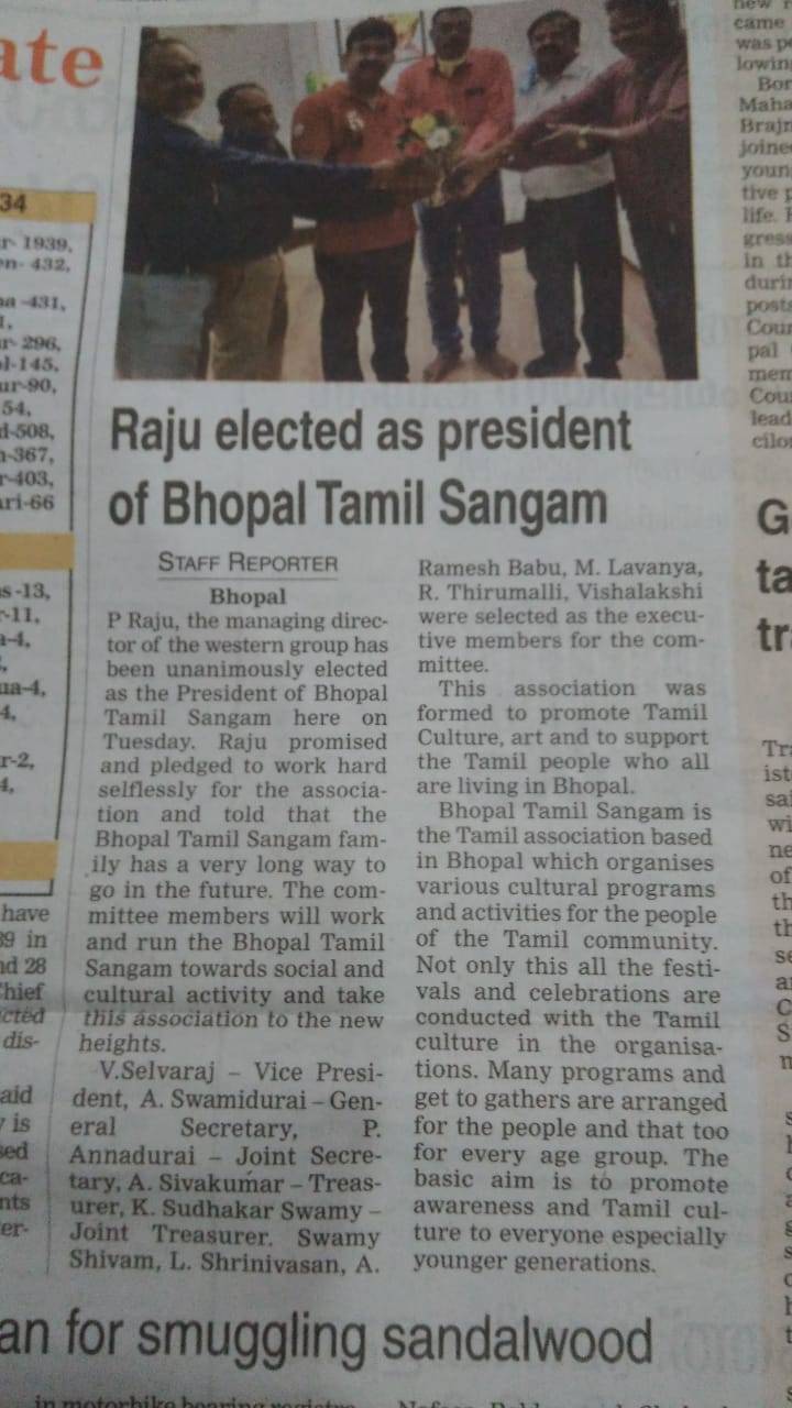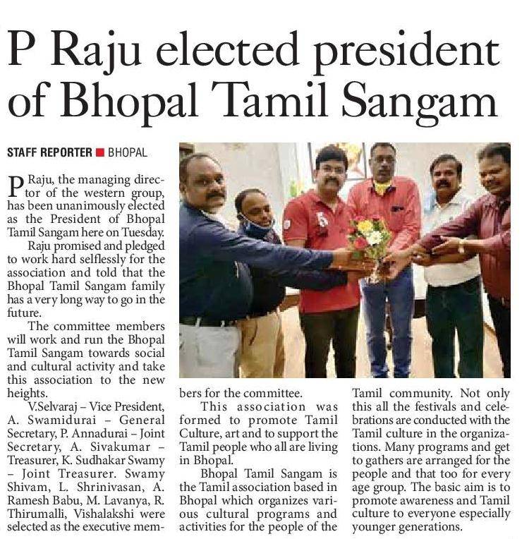 போபால் தமிழ்ச் சங்கம் செயற்குழு - ஆ. சாமிதுரை – பொதுச் செயலாளர் - 9303104208
